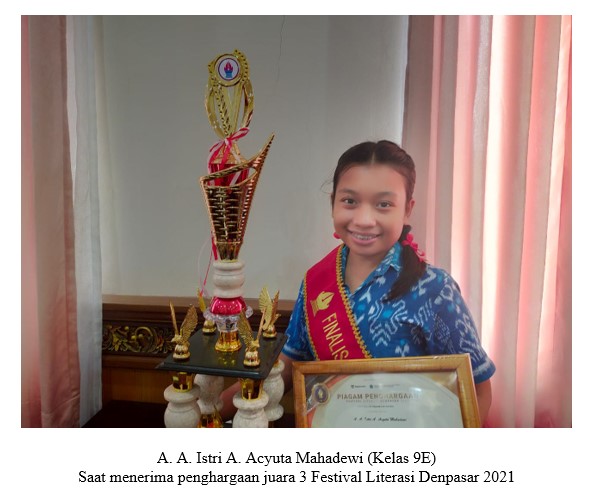• Juara 3 Festival Literasi Denpasar Tahun 2021 ( A. Istri A. Acyuta Mahadewi)