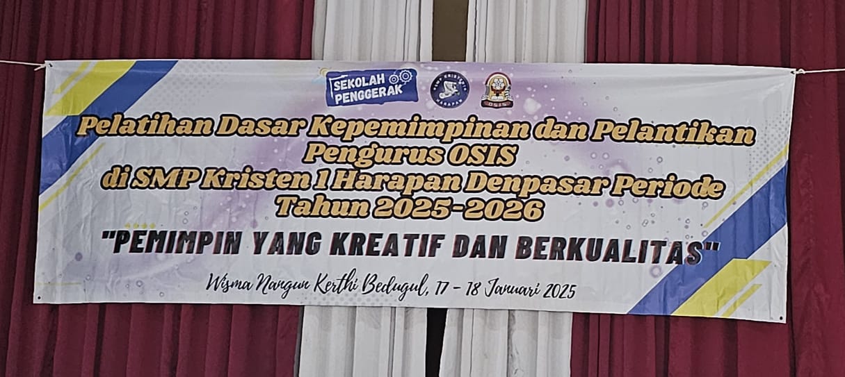 SMP K 1 Harapan menggelar acara pelantikan Pengurus OSIS periode 2025/2026 dengan penuh semangat dan khidmat pada Jumat – Sabtu, 17 – 18 Januari 2025. Bertempat Wisma Nangun Kerti Bedugul, kegiatan ini mengusung tema “Pemimpin yang Berprestasi dan Berkualitas”, yang bertujuan untuk membentuk karakter kepemimpinan serta meningkatkan kekompakan para siswa dalam organisasi.